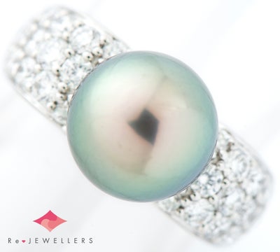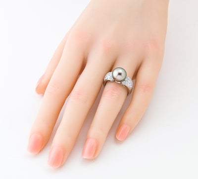 特徴 非常にテリの良い上質な黒蝶真珠をセットしたリング。上品なブラックカラーをベースに現れる、ピンクやグリーン系の干渉色に目を奪われます。サイズは10.2mmで、華やかな場面でもお使いいただける程よいボリューム感が魅力的です。サイドには、カットのバランスの取れた良質なダイヤモンド計1.08ctを贅沢にパヴェセッティング。年齢を問わず楽しむことのできる、エレガントなジュエリーです。