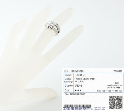 重さ:0.380ct クラリティ:VS1 研磨状態:GOOD 対称性:GOOD サイズ:4.35×4.39×2.96mm 蛍光性:MEDIUM BLUE 形状:ラウンドブリリアントカット