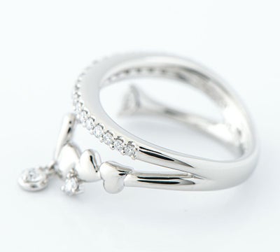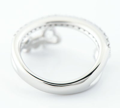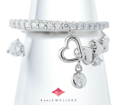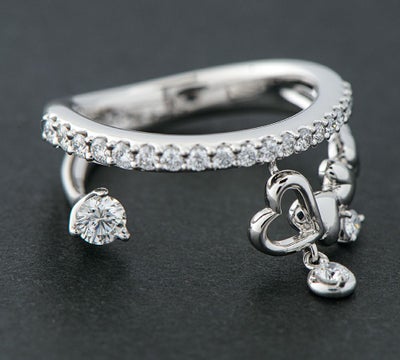 特徴 ハートをモチーフにしたチャーミングなデザインが可愛らしいプラチナリング。空間を意識したデザインは、軽やかで存在感があります。ベゼルセッティングした1石のダイヤモンドがゆらゆらと揺れる、個性的なジュエリーです。※デザイン、石の品質、作り等から小寺智子さんのデザインジュエリーと推測されますが、刻印がないため当店ではブランド保証なしで販売いたします。予めご了承ください。