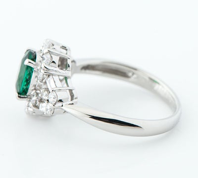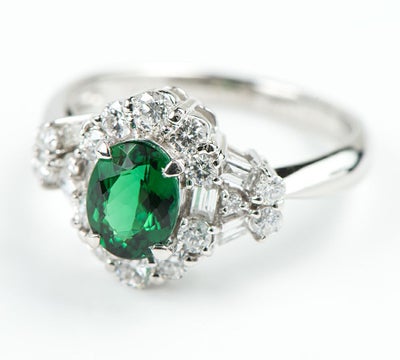 品質コメント:濃い色合いに鮮やかさを秘めたようなグリーンカラー。ルーペで側面に線状の内包物を確認できますが肉眼ではほぼ目立たず、透明度の高いテリの良いものがセレクトされています。