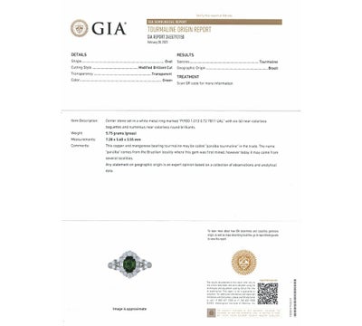 ブルー~グリーンカラーのトルマリンの中で、銅(Cu)とマンガン(Mn)成分を含有する鮮やかな色調を持つ「パライバトルマリン」。その中でも稀少なブラジル産の純粋なグリーンカラー、1.013ctと1ctアップのものがセットされた贅沢なリングです。奥行のあるディープな色合いに現れる、眩い煌めきに目を奪われます。ステップカットダイヤモンドを効果的に使った気品溢れるデザインも魅力的です。ブルーやブルーグリーンカラーが取り上げられることの多いパライバトルマリンのまた違った一面を楽しむことのできる、上質ジュエリーです。