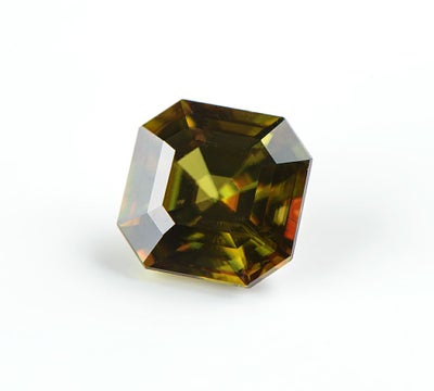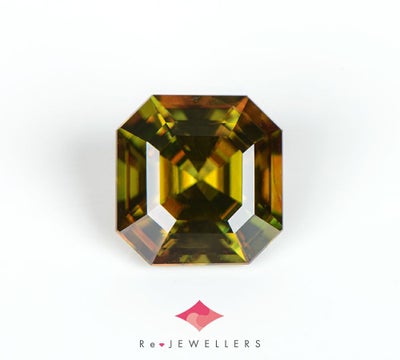 特徴 カット面が2重に見えるダブリング、角度によって色が異なって見える多色性という特性を持ち、7月の誕生石として新たに加わったスフェーン。一目でその透明度の高さが伝わる、上質なルースです。特徴的なのは縦と横の同じ長さがほぼ同じ正方形をベースにしたステップカット。神秘的なまでに美しいその煌めきに引き込まれます。