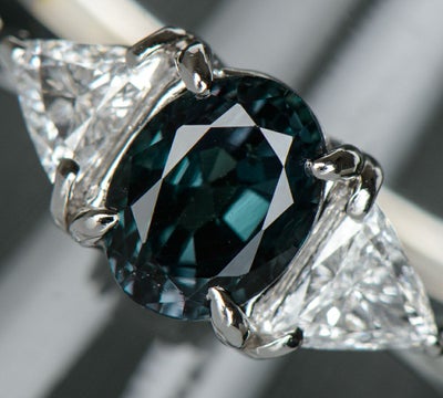 透明度の高い上質なアレキサンドライト1.00ctをセットしたリング。昼光下では青緑色、白熱光下では深みのある赤紫色へと鮮やかにカラーチェンジします。ディープな色合いの中に現れる、眩い煌めきが魅力的です。サイドのトリリアントカットダイヤモンドのシンプルな装飾が、神秘的な石の美しさを際立たせています。