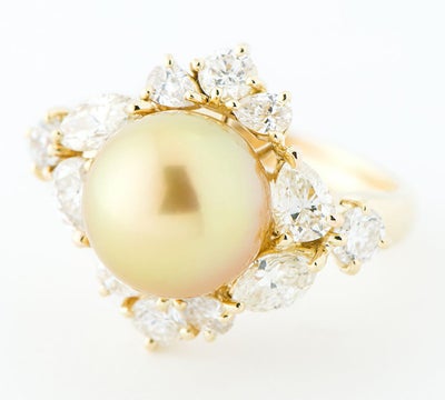 特徴 まるで本物のゴールドのような輝きを感じる、ゴールデンパールをセットしたリング。長い年月をかけ自然が生み出した重厚感のあるテリと、真珠特有の柔らかな干渉色に目を奪われます。贅沢に散りばめられた計2.65ctのダイヤモンドは一石一石が大きく、純白の輝きが美しいものをセレクト。ボリューム感のある、華やかな素晴らしいデザインに仕上がっています。ゴールデンパールの魅力を存分に楽しんで頂ける、エレガントな上質ジュエリーです。