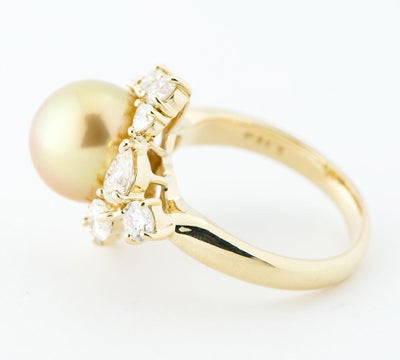 11.7mm ゴールデンパール(南洋真珠) ダイヤモンド 計2.65ct 18金イエローゴールド 15号 リング・指輪【中古】(2200000483768)