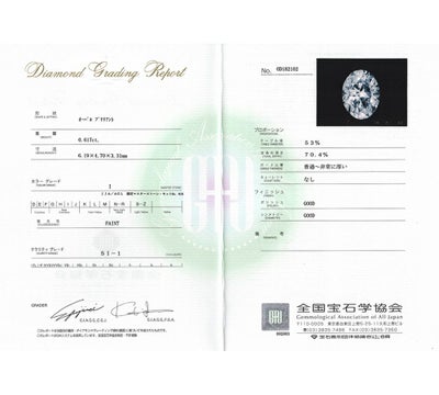 付属品 鑑定書(全国宝石学協会発行)