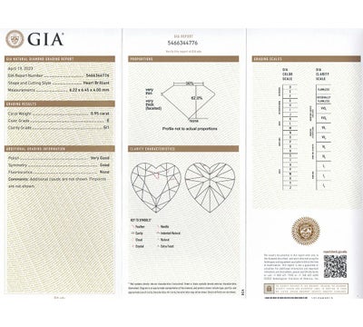 重さ:0.95ct カラー:E クラリティ:SI1 研磨状態:VERYGOOD 対称性:GOOD サイズ:6.22×6.45×4.00mm 蛍光性:NONE 形状:ハートブリリアントカット