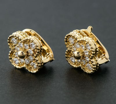 ヴァンクリーフ&アーペル(Van Cleef & Arpels) ヴィンテージ アルハンブラ ダイヤモンド 18金イエローゴールド イヤリング【中古】(2200000483874)