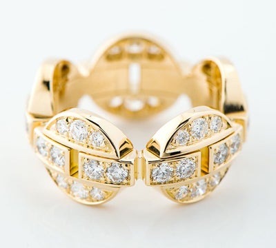 特徴 洗練された印象を与えるカルティエのイマリアリング。ダイヤモンドが煌めく幾何学的なモチーフを途切れなく繋げた贅沢なデザインに目を奪われます。シンプルな形を組み合わせ、個性的に仕上げた気品溢れるジュエリーです。