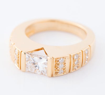 1780年に創業したショーメは、1812年に伝説的なヴァンドーム広場(Place Vendme)に店を構えた最初のジュエリーメゾン。造形美を感じさせる格調高いデザインが魅力的なリングです。中央には、透明度の高い上質なプリンセスカットダイヤモンドをセット。広い場面を強調する留め爪のデザインは、サイドからも石の美しさを楽しむことができます。アームは、重厚感のあるユニセックスな仕上がりに。気品漂う、上質なジュエリーです。