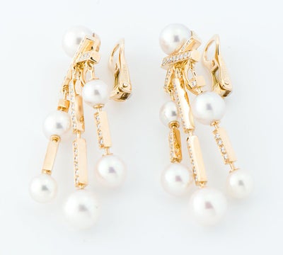 直線的なダイヤモンドパーツと、テリの良いパールを組み合わせたシャネルのイヤリング。「X(エックス)」のように見えるクロスしたダイヤモンドのパーツから、流れるような3つのラインが上品に揺れ動きます。アシンメトリーの長さやパーツの配置、パールのサイズが異なることで重厚感を感じますが、軽やかな印象を与えます。アコヤ真珠の美しさを引き出した、気品溢れるエレガントなジュエリーです。
