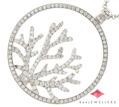 特徴 ハイクオリティなジュエリーを生み出しているピアジェから2009年に新作として発売されたライムライトコレクション。豊かで澄んだ海を育むサンゴを高品質なダイヤモンドを敷き詰め、立体的に表現しています。同じデザインのエンドパーツも愛らしい、胸元で華やかに煌めくゴージャスなペンダント・ネックレスです。※参考上代2,362,502円の商品です。(2009年6月時点)