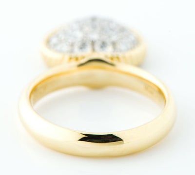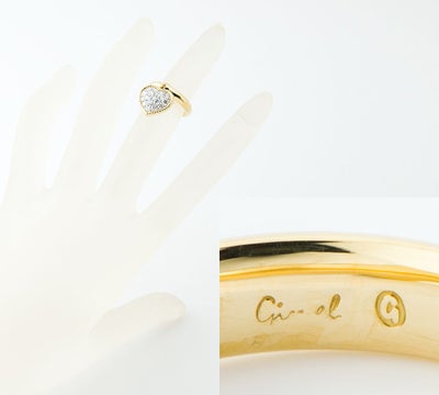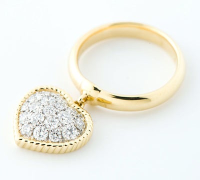 特徴 アジュール(裏取り)のハニカム(蜂の巣)細工の上に蜂が羽を休めている、ギメルの代表的なモチーフのリング。アーチを描くほどに滑らかにパヴェセッティングされたダイヤモンドが、一体感のある眩い煌めきを放ちます。金細工の装飾に縁どられたハートのパーツが、ゆらゆらと揺れる様が印象的。確かな技術が光る、洗練された上質ジュエリーです。