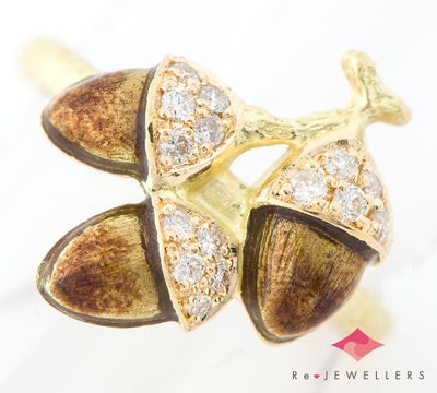 中嶋 邦夫 ニックスファクトリー エマイユ ドングリ ダイヤモンド計0.22ct 18金イエローゴールド 11号 リング・指輪【中古】(2200000368997)