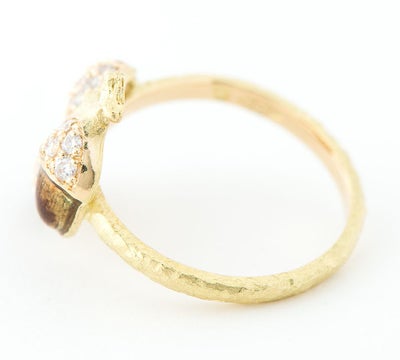 特徴 エマイユ技法を用いて独特の世界観を魅せる中嶋邦夫のニックスファクトリー。数々の作品に登場するドングリを主役にしたリングです。子供の頃、遊びの中で生まれた名もない作品のように、純粋で素朴な素晴らしさが心を満たしてくれます。モチーフを引き立てるアームは、クラフト感あふれるマットな質感に。エマイユで表現された艶やかなドングリが、自然の佇まいを思い出させてくれる芸術的なジュエリーです。