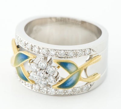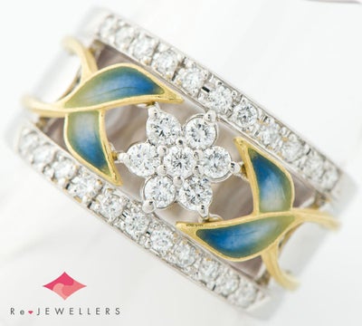 中嶋 邦夫 ニックスファクトリー リーフモチーフ エマイユ ダイヤモンド計0.56ct プラチナ900 12.5号 リング・指輪【中古】(2200000456878)