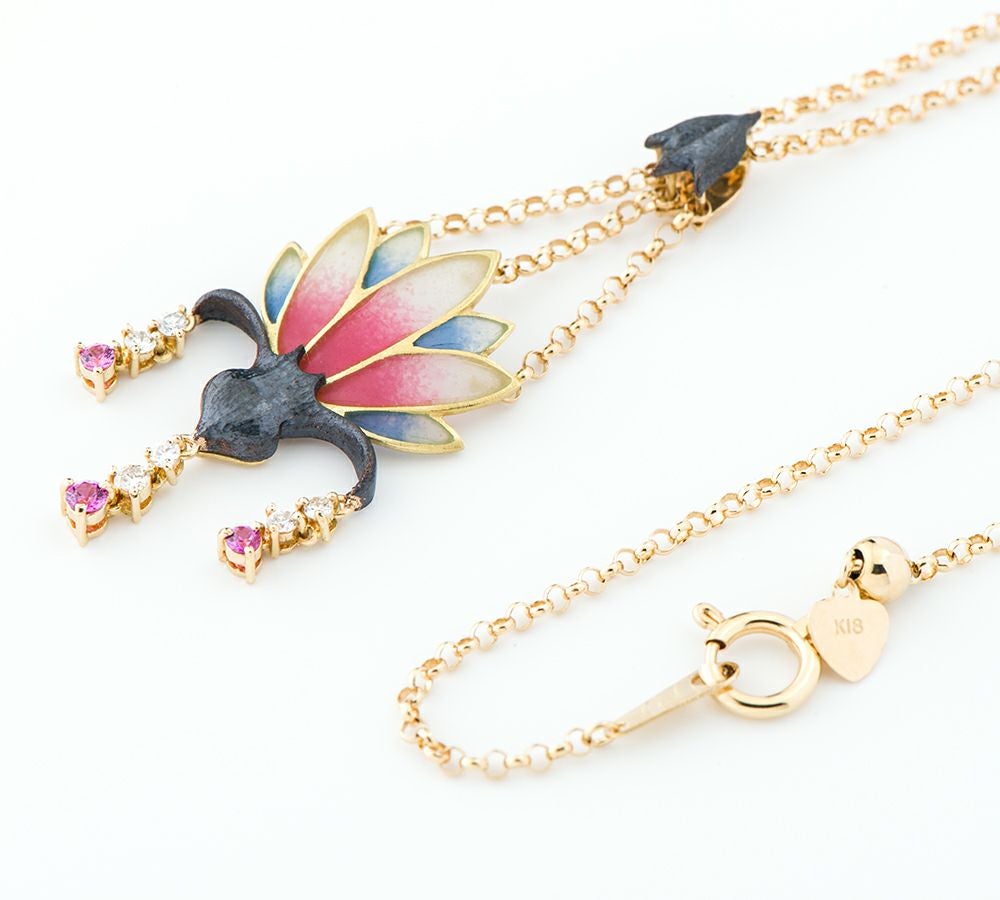 他の画像を見る 中嶋 邦夫 ニックスファクトリー エマイユ ロータス ピンクサファイア計0.12ct ダイヤモンド 計0.13ct 18金イエローゴールド ペンダント・ネックレス【中古】(2200000428837) 価格 ¥ 250,000 税込 カートに入れる お気に入りに登録する