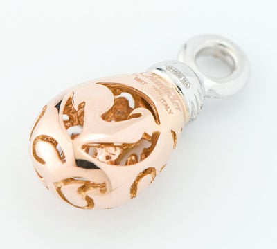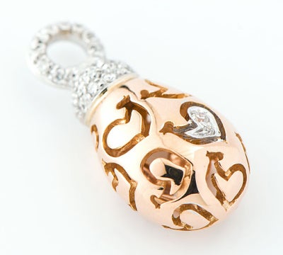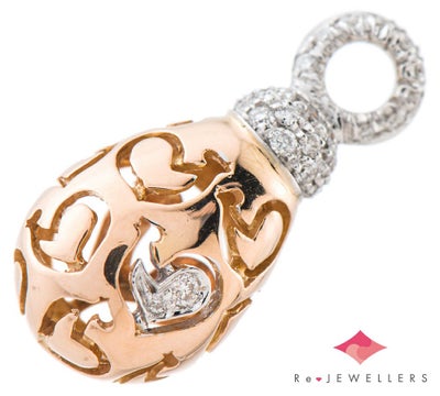 世界中のセレブリティから愛される、イタリア・カプリ島に本拠を置く高級ジュエリーブランドシャンテクレール。フランス語で“雄鶏”を意味するブランド名の「シャンテクレール(Chantecler)」をモチーフにした、ほどよいサイズのチャームです。施されたロゴモチーフの透かし彫りが一見するとハートのような可愛らしい模様に見え、その一つにダイヤモンドをあしらっています。裏面の透かしロゴも美しい、遊び心溢れる軽やかなジュエリーです。