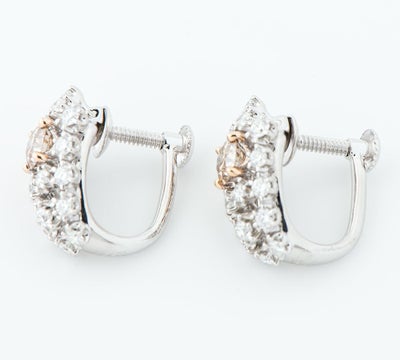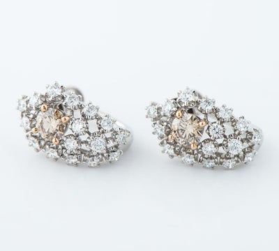 特徴 柔らかな色合いのブラウンダイヤモンド計0.60ctの眩い煌めきに目を奪われる、カシケイのイヤリング。計0.85ctの美しいメレダイヤモンドを取り巻きに、メインストーンとしての存在感を存分に感じるシャープな輝きと豊かなファイアが魅力的です。耳元に沿った柔らかなアーチを描いたシンプルデザインは、品格を感じる洗練された雰囲気。世代を問わず楽しむことのできる、エレガントなジュエリーです。