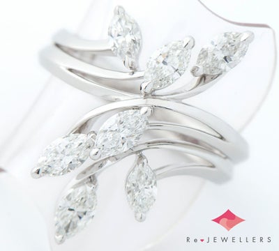 特徴 ルース事業とプロダクツ事業を併せもつトータル・ジュエリー企業カシケイ。高品質のダイヤモンドルースを調達、国内主要メーカーに供給し、日本のトップディーラーとして実績を有しています。計2.00ctのマーキスブリリアントダイヤモンドを贅沢にセットした、ボリューム感のあるリング。大胆なアームのデザインに負けない一石一石の存在感に目を奪われます。気品漂う、透明感のある美しい煌めき。厳選された素材を華やかに仕上げた、ラグジュアリーなジュエリーです。※三越刻印有