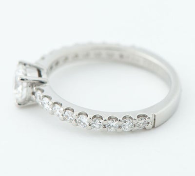 特徴 上質な0.35ctのダイヤモンドをセットしたフォーエバーマークのプラチナリング。美しいカットから放たれる煌めきが魅力的です。メレダイヤモンドも、横からの光を上手く取り込めるようセッティングされています。あらゆるシーンで活躍する、シンプルなジュエリーです。