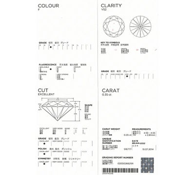 品質コメント:蛍光性:NEGLIGIBLE。肉眼で確認することはできませんが、ダイヤモンド中央部分にフォーエバーマークのレーザー刻印が施されています。
