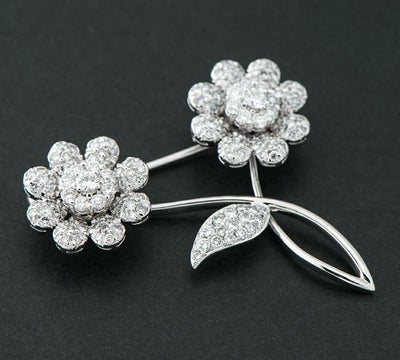 特徴 計2.00ctのダイヤモンドを贅沢に使用したフラワーモチーフのブローチ。丸みのある立体的なセッティングが、一石一石の輝きを引き立てています。優雅な曲線の茎と愛らしい花が存在感を放つ、美しいジュエリーです。
