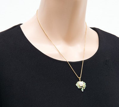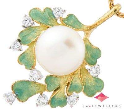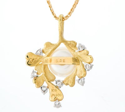 中嶋 邦夫 ニックスファクトリー エマイユ リーフモチーフ パール(真珠) ダイヤモンド 18金イエローゴールド ペンダント・ネックレス【中古】(2200000467683)