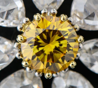 7石のローズカットダイヤモンドを花びらに見立て、その中心にセットされた濃い色合いのナチュラルカラーダイヤモンドが放つ圧倒的な存在感。ギメルらしいこだわりを感じる洗練されたジュエリーです。