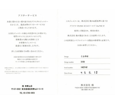 • お買い物についてご不明な点はジュエリーコンシェルジェデスクへ 0120-96-7794 受付時間 10:00~16:00  定休日 日・祝日