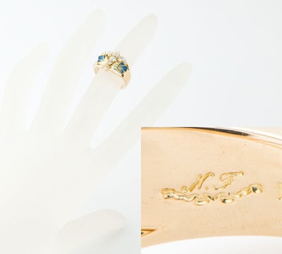 特徴 エマイユ技法を用いて独特の世界観を魅せる中嶋邦夫のニックスファクトリーのリング。ティアラのようなデザインは、サイズの異なるダイヤモンドが絶妙なバランスでアレンジメントされており、質感の異なるエナメルのトルコキキョウが瑞々しく際立たせます。0.3mm前後の線で模様を描く高度な技術と、美しい色彩を生み出すために幾度となく手を加えて創りだされる技法によって生まれた、装いに華やぎを添えるエレガントなジュエリーです。