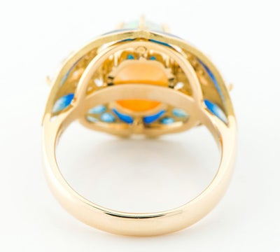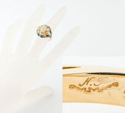 エマイユ技法を用いて独特の世界観を魅せる中嶋邦夫 ニックスファクトリー。中央にセットされたオパール1.76ctの鮮やかな遊色が目をひくリングです。透明感のあるプリカジュール・エマイユのブルーやグリーンの色合いが美しく、ペアブリリアントダイヤモンドがきらりと輝き石の特性を活かした妖艶な雰囲気が漂う個性的なデザインに仕上げています。程よいボリューム感も魅力的。唯一無二の存在感を放つ、芸術的なジュエリーです。