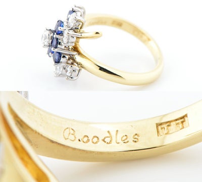 1798年に創業した英国の高級ジュエラー、ブードルズ(Boodles)は、200年以上にわたり家族経営を続けてきたブランドです。 ブルーサファイアの高貴な色合いと、眩いダイヤモンドの輝きが生み出すコントラストが美しいリング。モダンな印象のアームが、デザインのポイントになっています。素材のクオリティの高さがブランドのこだわりを感じさせる、気品溢れるジュエリーです。