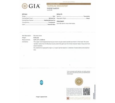特徴 パライバ特有のネオンカラーが魅力的なブラジル産のパライバトルマリンルース。0.35ctと整ったオーバルカットで非常にテリが良く、内包物はありますが一般的なパライバと比べるとかなり少なめです。高い透明感と眩い煌めきが印象的な上質な石です。グリーンを帯びた澄んだブルーカラーに魅了される稀少な石です。
